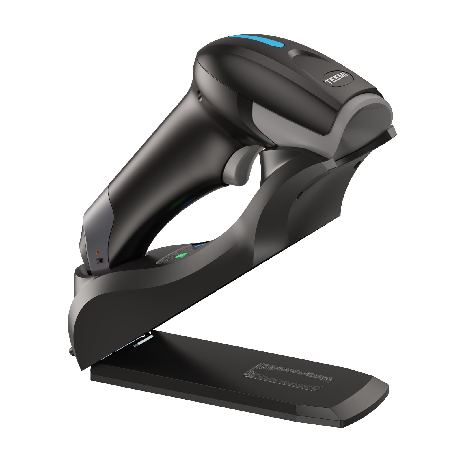 TEEMI TMSL-57CR 1D 2D Bluetooth Barcode Scanner with Intelligent USB Cradle Charge Station Wall Mounted, Auto Activate Omni-Directional Hands-Free Scanning Mode, Wireless Charging Black Color