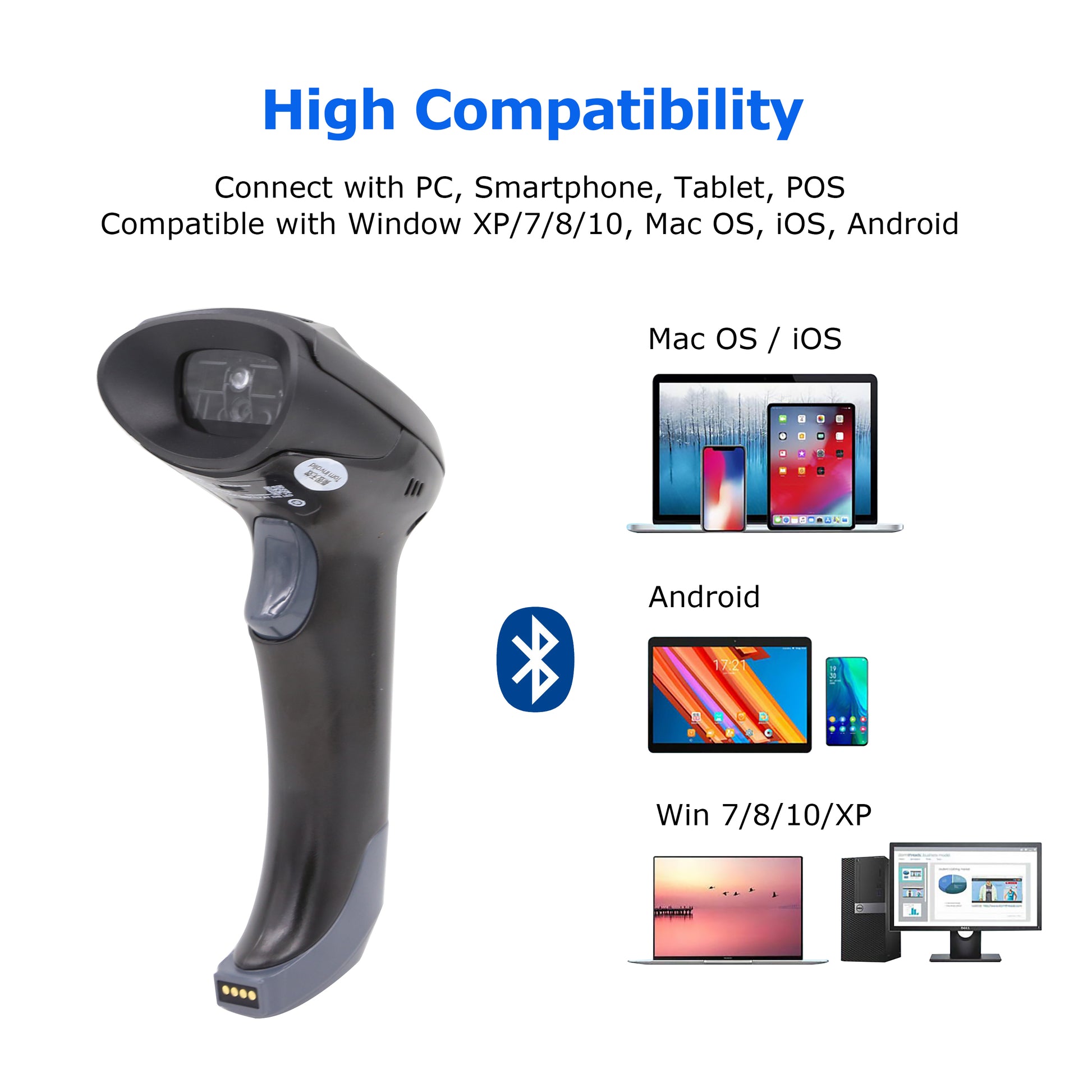 With the latest Bluetooth 5.0 technology, the scanner can work with Apple iOS, Android, Window PC and tablets wireless.