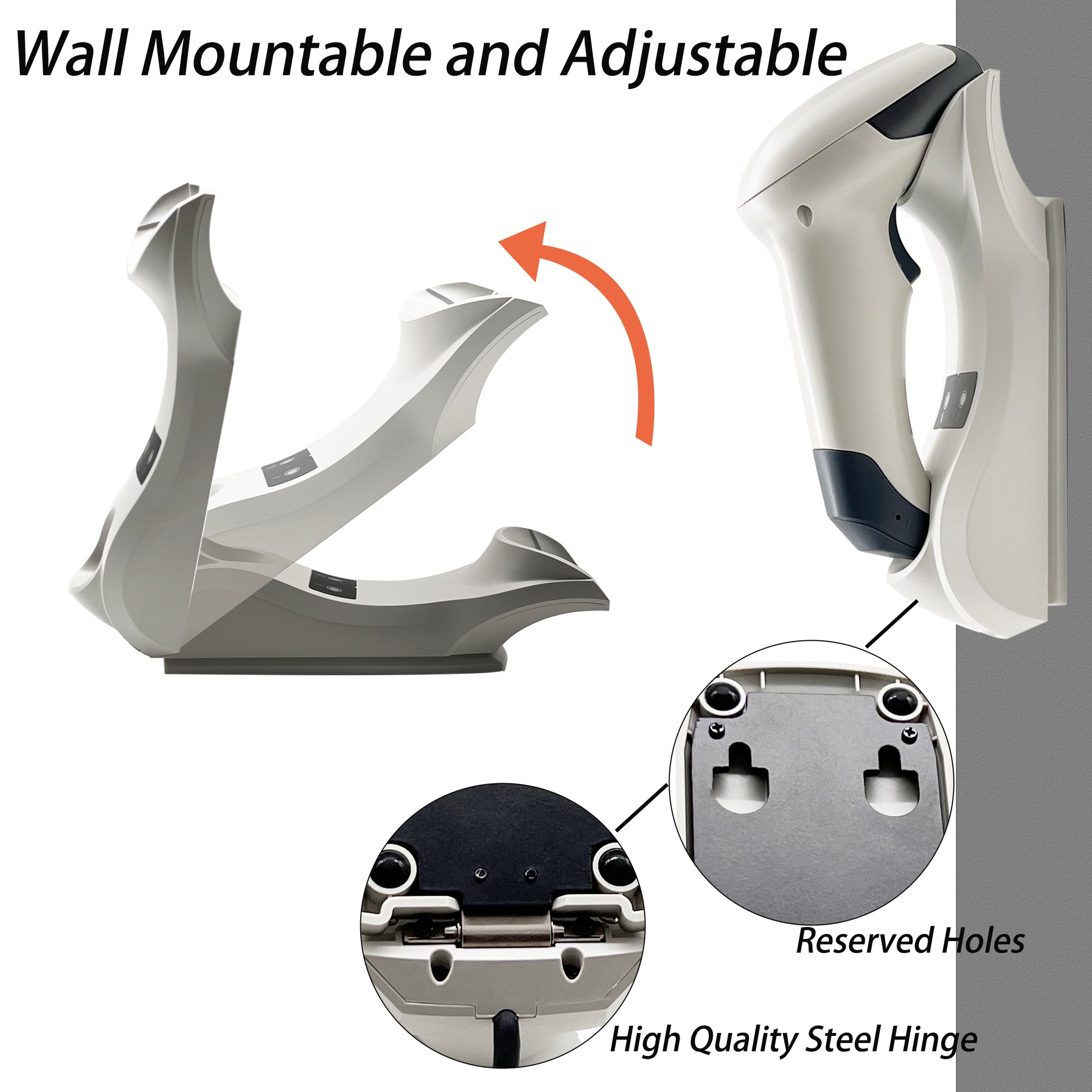 - Intelligent Wall Mountable USB Cradle: You can program the scanner to be on Presentation-Normal mode when it is in the cradle and be in Trigger mode when it is out of the cradle automatically. The cradle works as a data receiver, charge station and stand. The bottom page button on the cradle will help you to upgrade the internal software and find the paired connected scanner if you forget where you put it.